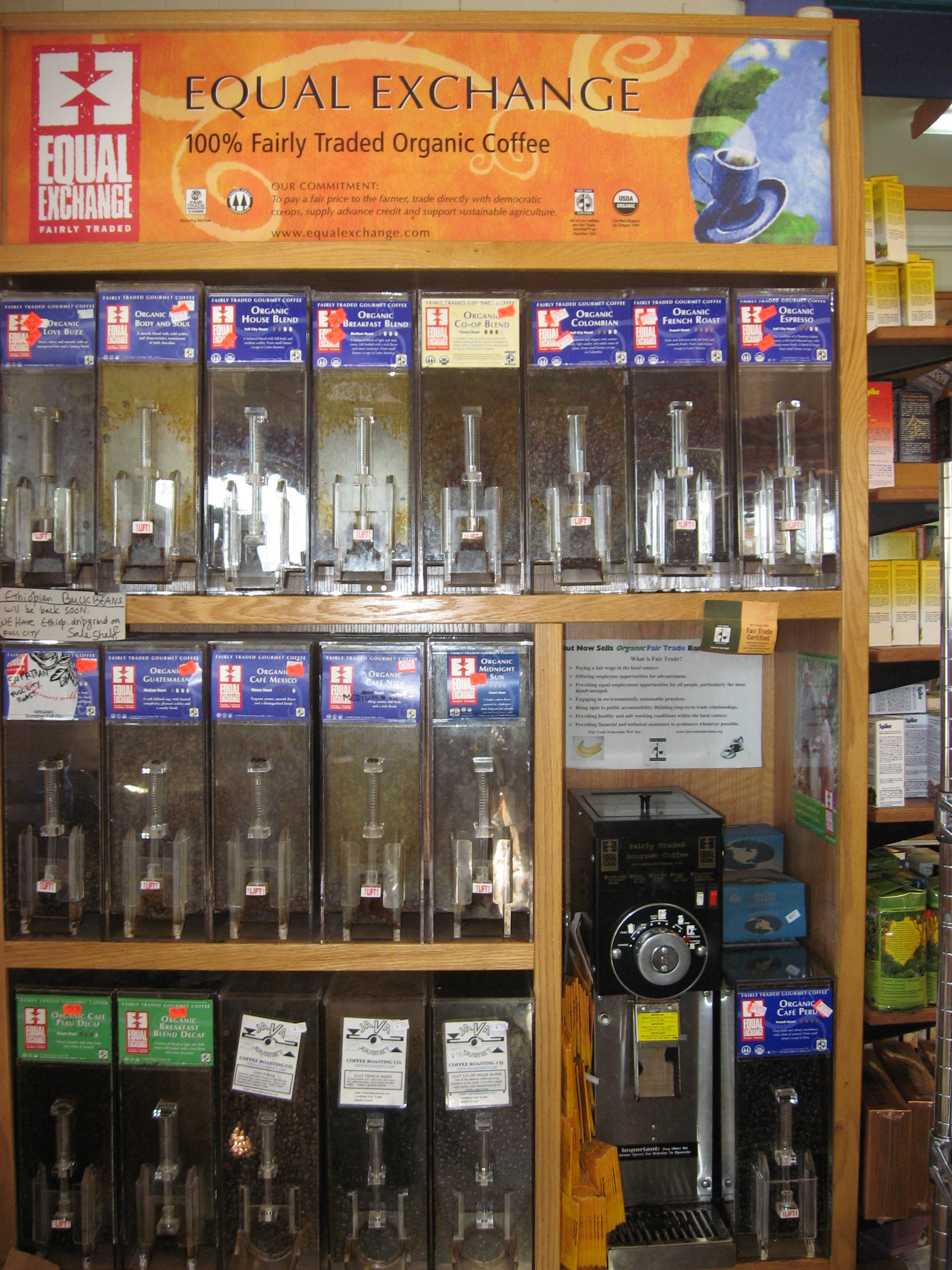 | Equal Exchange Brand (Whole bean, grind in store) Espresso French Roast Breakfast Blend Breakfast Blend (Decaf) |